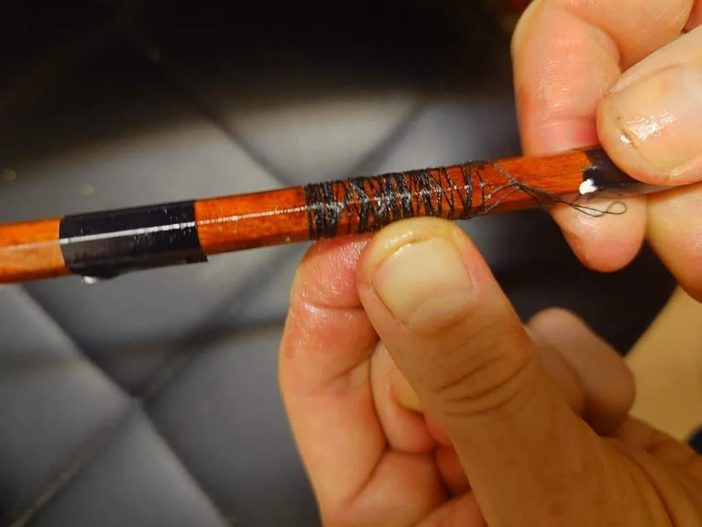To ensure uniform pressure from all sides while the glue cured, the repaired area was tightly wrapped with thread.