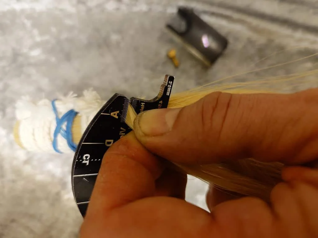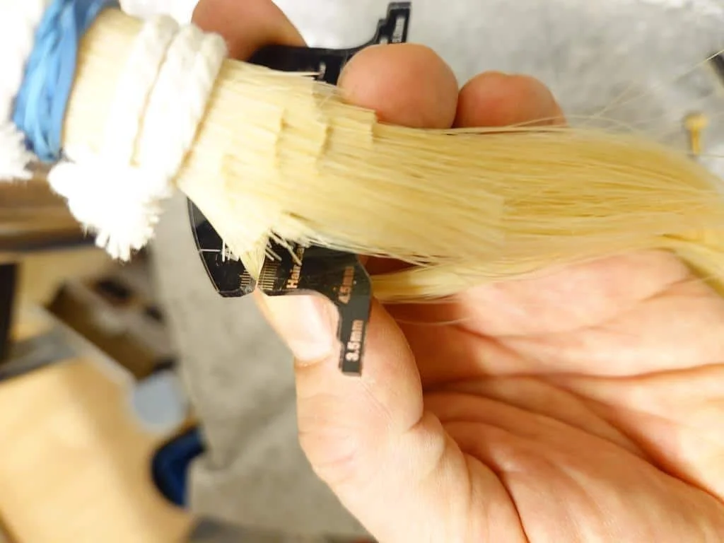 The required amount of hair was carefully measured and selected to match the bow’s specifications and playing requirements.