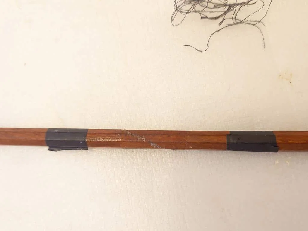 Our task was to structurally reconnect and reinforce the broken stick while maintaining the bow’s original alignment, strength, and balance — a highly delicate and technically demanding restoration.