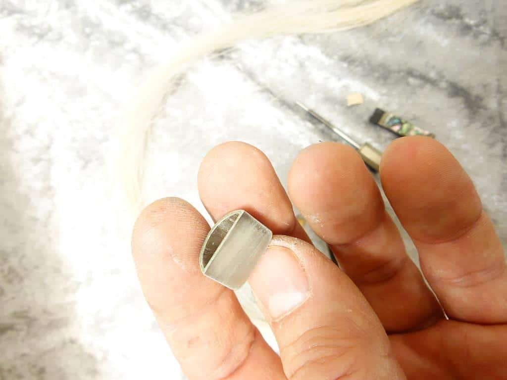 For a perfect bond, the metal pin must fit tightly inside the bow stick without any free space.