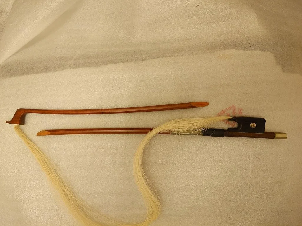 The break made the bow unsafe and impossible to use for playing. Given the properties of pernambuco wood and the importance of correct geometry, this type of repair requires extremely high precision. Any misalignment could permanently affect the bow’s straightness and playing characteristics.